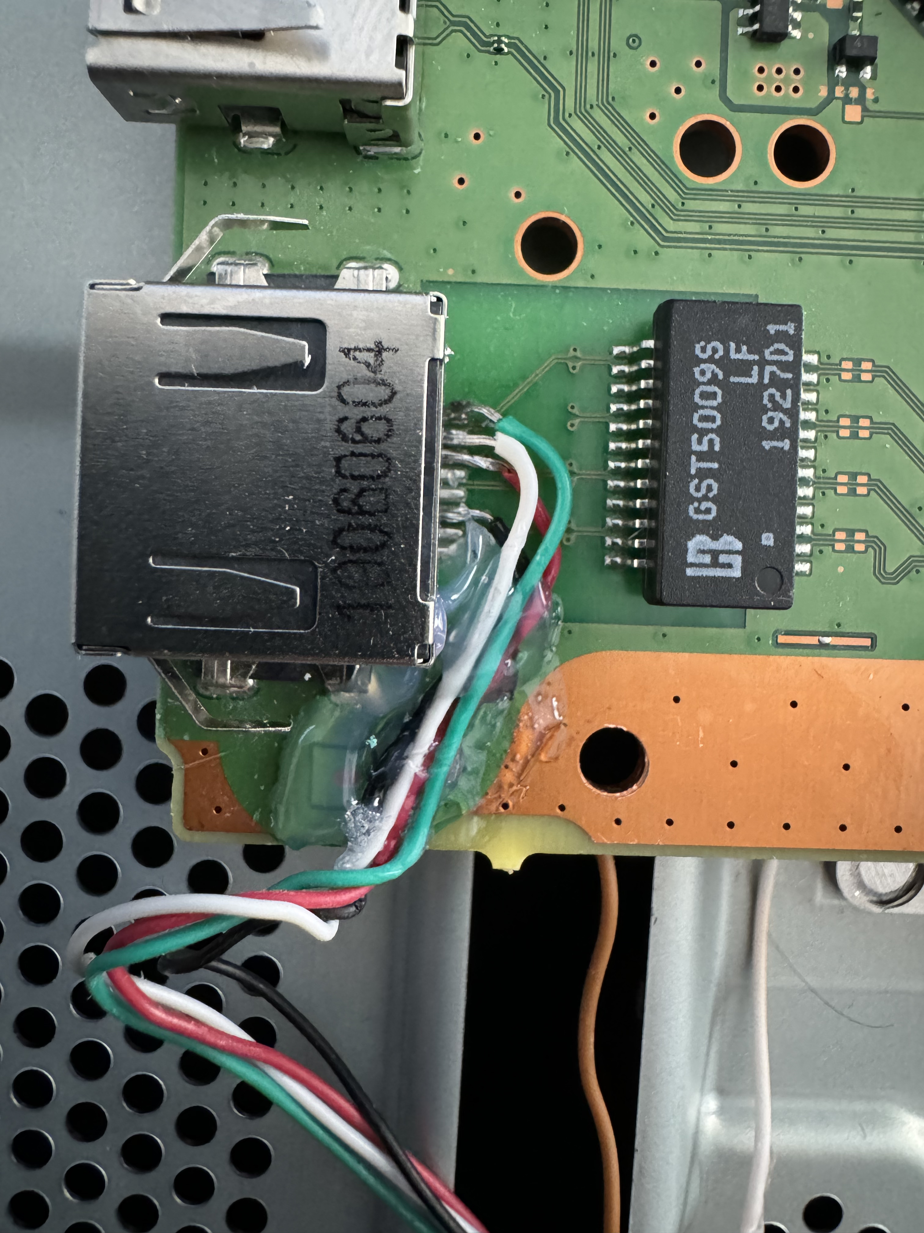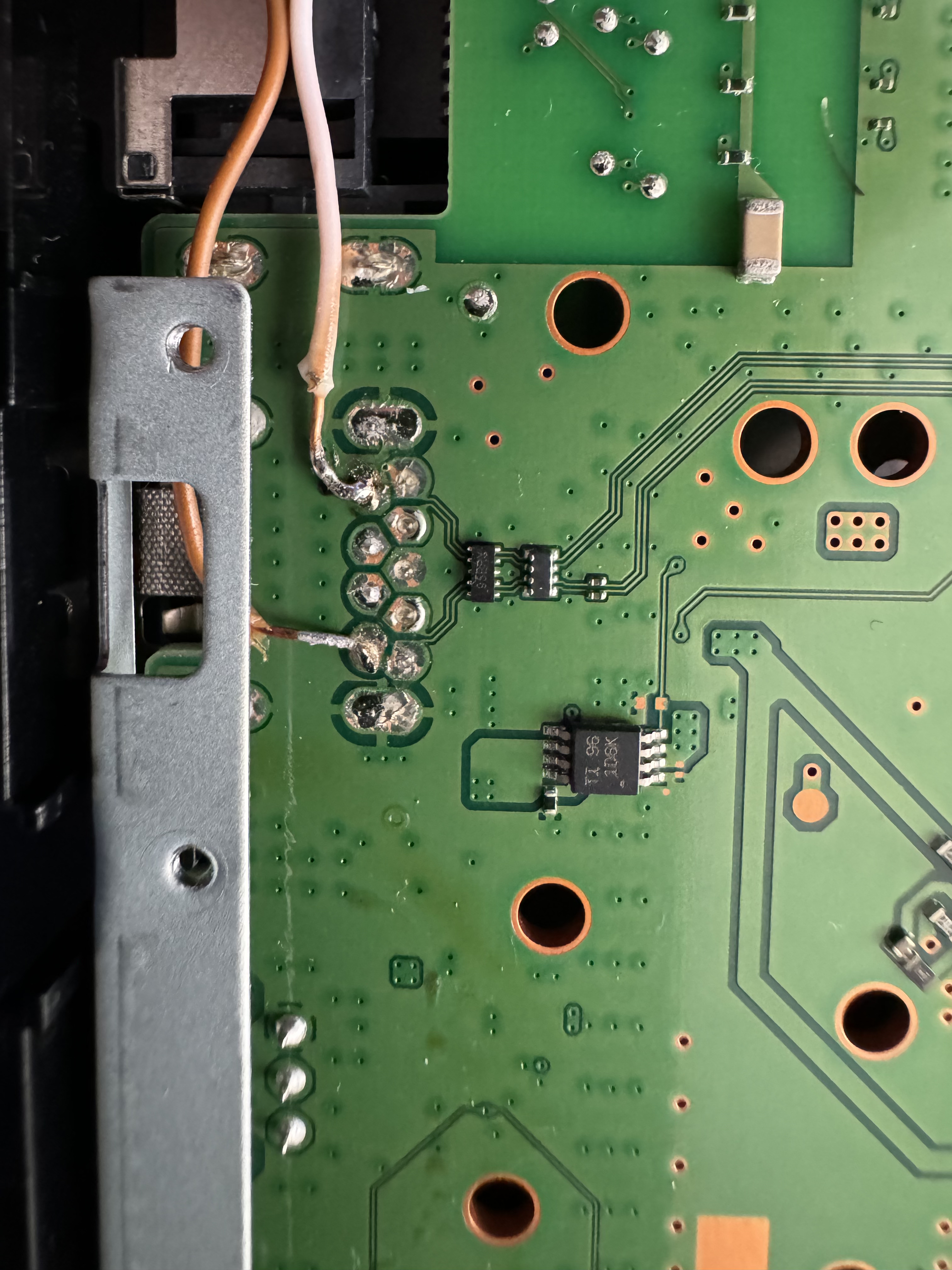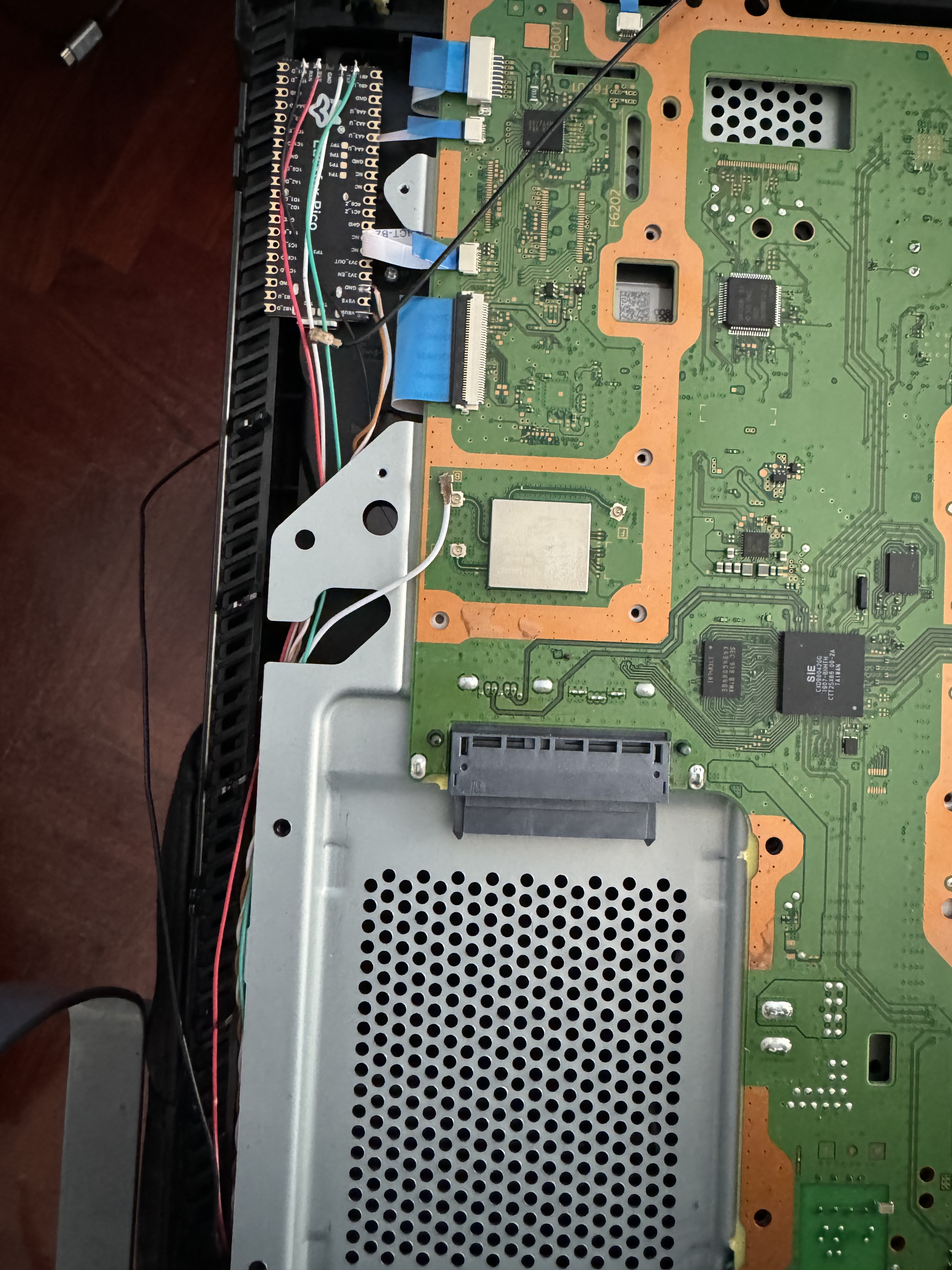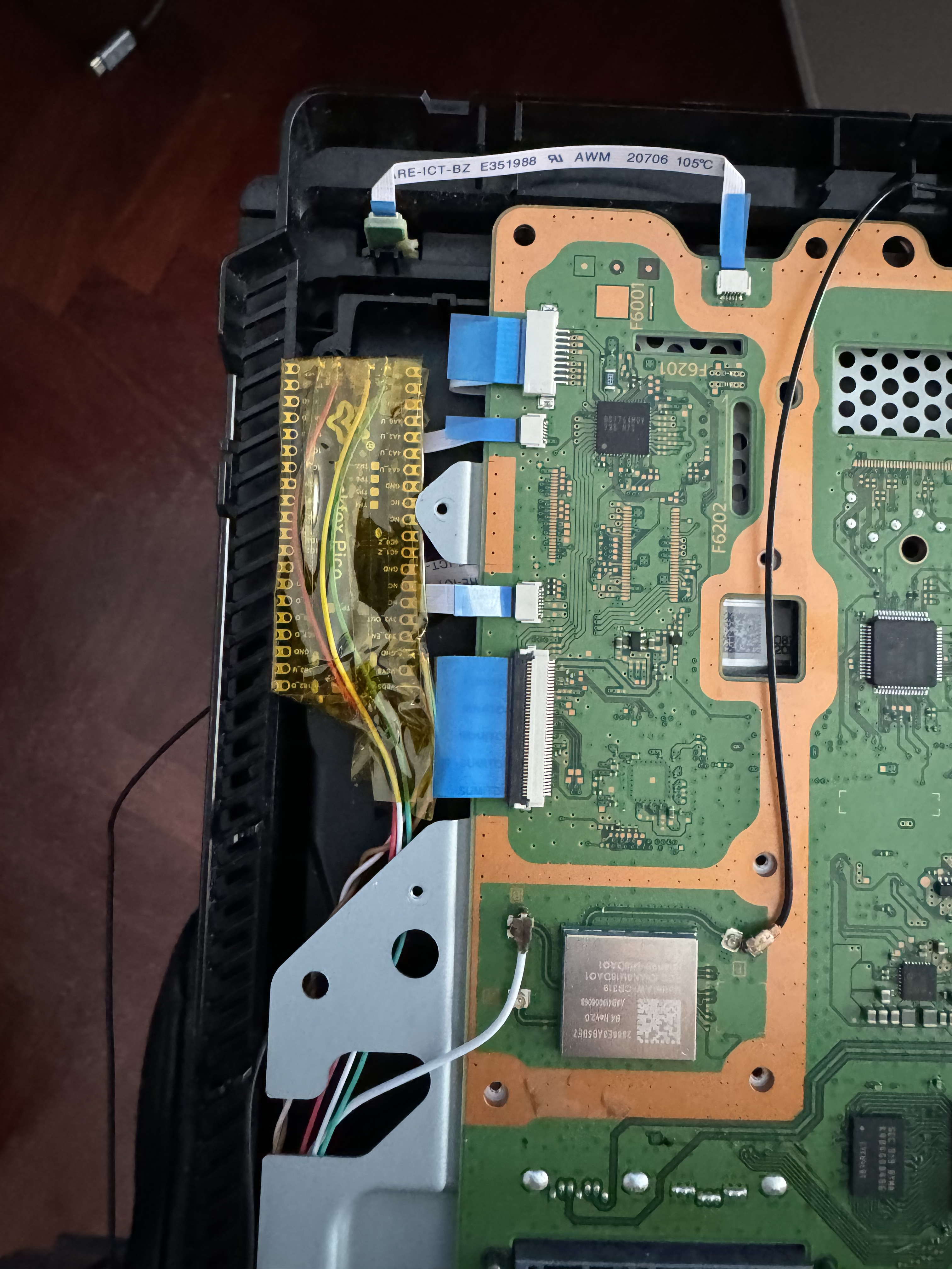 Regarding the ethernet connection, the creator apologizes for not being able to maintain the color coding in the photos, He didn't have enough cables. For the PPPoE connection used by the PPPwn exploit, only 10/100 ethernet is needed, so 4 wires are sufficient. This diagram shows the pins we need