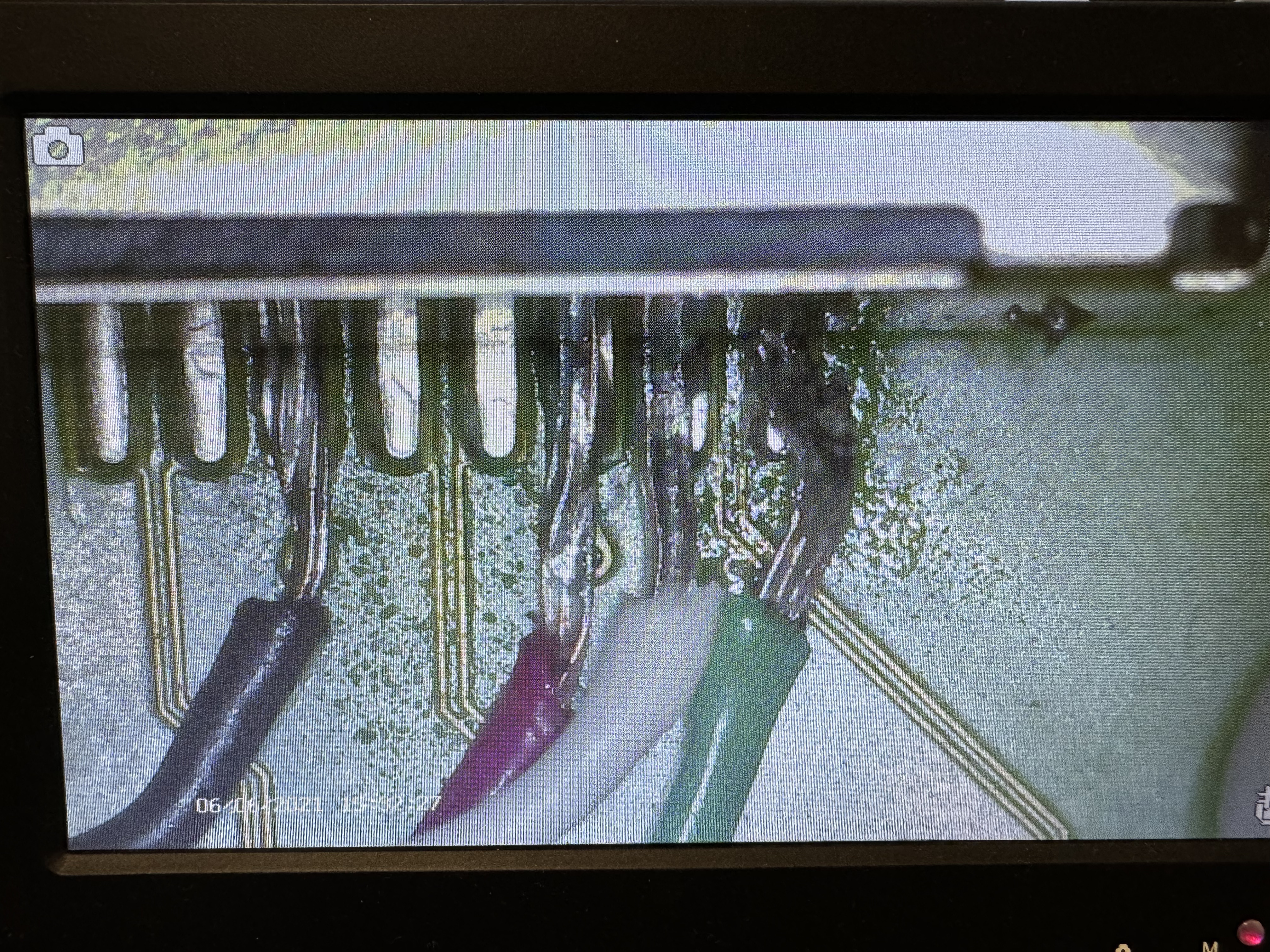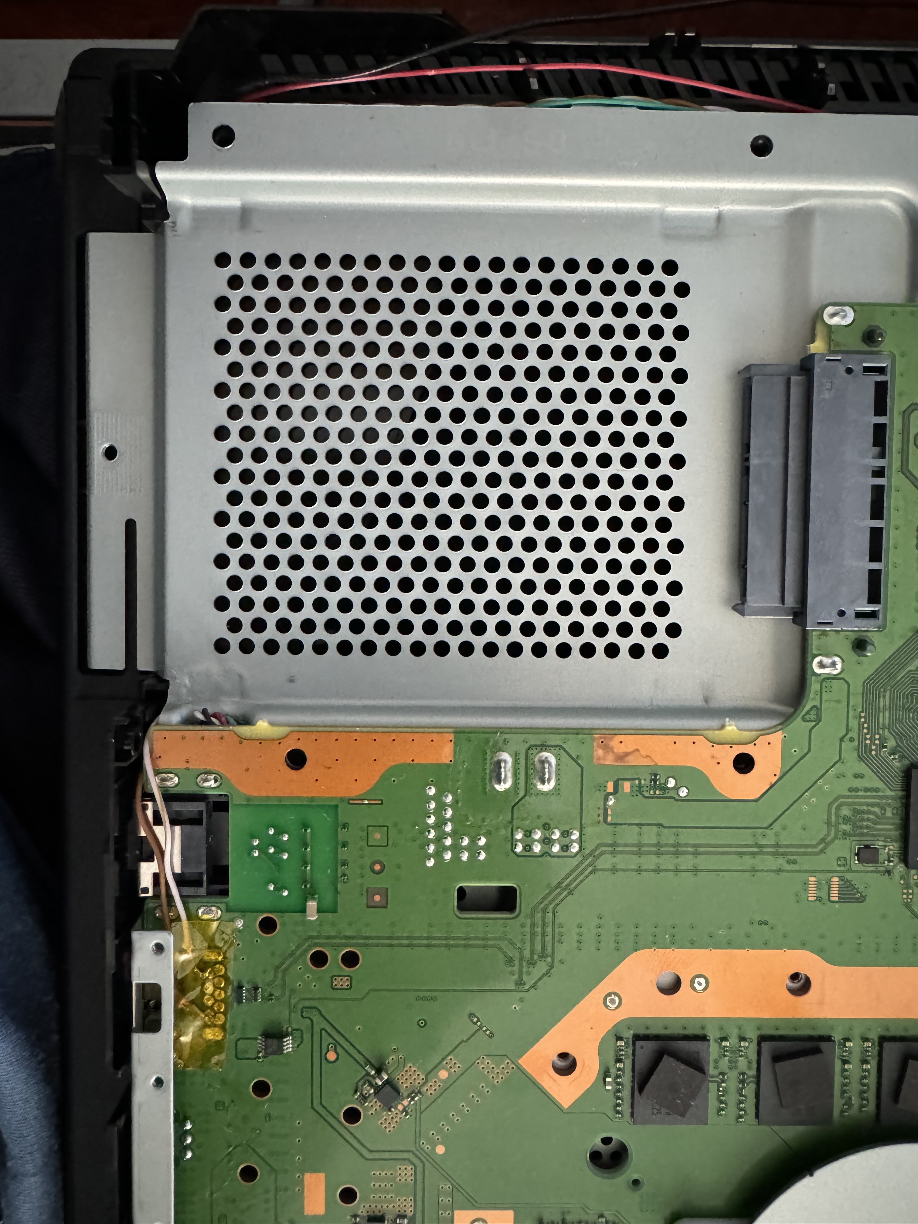 The wires are secured in this area with hot glue so they wouldn't move and thus not interfere with the metal plate above the motherboard.